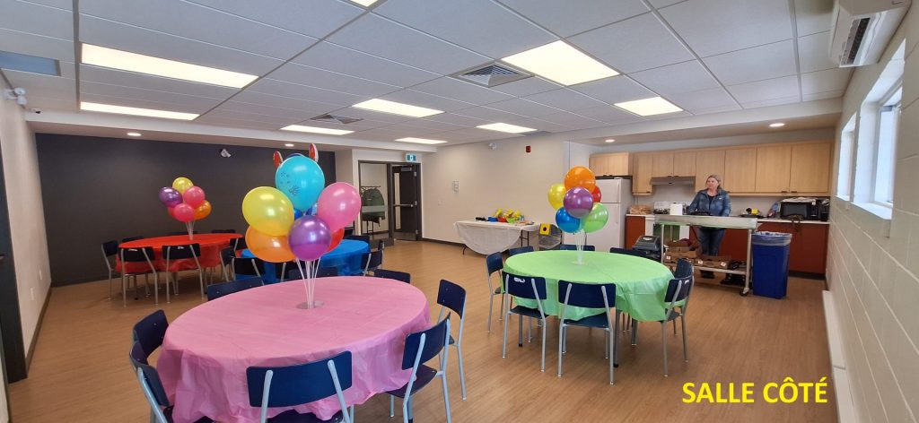 Capacité de 60 personnes. Tarif: 100$ location pour réunion, 125$ location avec 1 repas. Cette salle est disponible pour la location lors de baptême, mariage, retour de funérailles, rencontre familiale, conférence, etc. Cuisine disponible. Stationnement pour voitures et autobus. Adresse: (sacristie de l’église) 491, des Érables, Sainte-Eulalie. Contactez madame Chantale Désilets au 819-225-4647 ou par courriel: marioperreault54@gmail.com